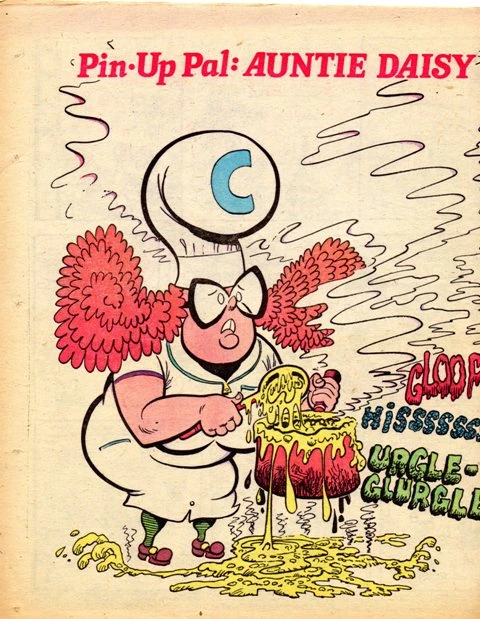 Auntie Daisy the School Meals Lady worked at the school attended by Cheeky. She was known for her terrible cooking.