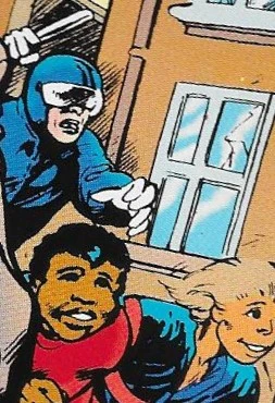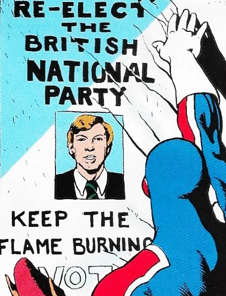 Earth-238 was superficially similar to Earth-616, the home of Captain Britain, but when the hero was sent there by Merlyn in 1981 he quickly discovered that it was fundamentally different. Britain was a fascist state ruled by Queen Margaret I, where the police had guns and the frightened population were kept in line by a gang of paramilitaries called the Status Crew. The ruling political party was the BNP. Worse still, the reins of power were covertly held by Mad Jim Jaspers, an insane politician who had the power to alter reality. He used his skill as a demagogue to convince the public that superheroes were a threat to law and order who had to be eliminated, and designed the machine/animal called the Fury to carry out this task. Within two years the Fury had killed all of Earth-238's superhumans apart from Jaspers himself (who had wisely built a 'don't kill Jaspers' law into its programming) and Captain UK, who used a teleport device to flee to Earth-616.