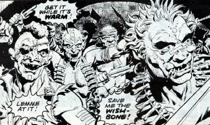 End of the Line was a story by Steve Parkhouse and Dave Gibbons which ran in Doctor Who Monthly #54-55 in 1981. In it, the Doctor arrives in what seems to be a London Underground station somewhere in the far future — a time when most members of the human race have devolved into savage cannibals. A small group of normal humans, the Angels, are trying to escape to a mythical place called "Countryside" at the end of the Tube line. The Doctor helps them get their train moving, but is separated from them and, having travelled outside the city by TARDIS, finds that the countryside is a toxic wasteland. The Angels seemingly never make it out there anyway.