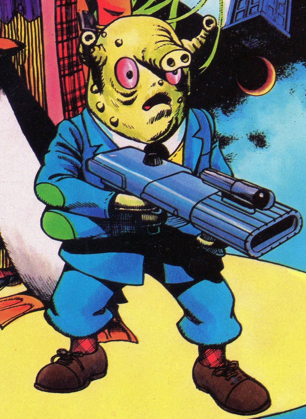 Ivan Asimoff is an author of science fiction stories from the planet Sigma, where he lives in his Aunt's house. A timid soul, he lives vicariously through his 'alter-ego', Captain Conquest, the star of his books. He is a friend of The Doctor and of the Freefall Warriors.