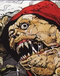 Pustula, whose orins are unrevealed, was one of the three "cousins" of the Sisters of Death summoned to aid them against Judge Anderson (the others were Dementia and Ephemera). They failed and were banished back to Deadworld.