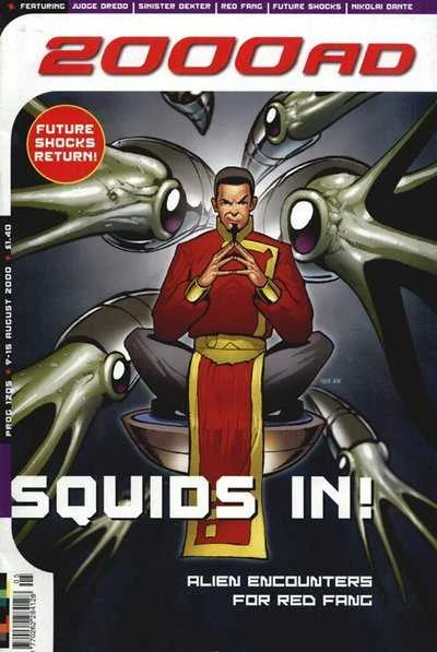 Red Fang was a comic strip by Steve Moore and Steve Yeowell about a Chinese mob boss from the future, with colours by Chris Blythe and letters by Ellie De Ville. The story, which concerned Sleeping Dragon Fang's somewhat convoluted scheme to seize control of the Triad from the self-serving and lecherous Master Lee with the help of his female enforcer 'Phoenix' (whom he ultimately betrays "for the good of the society"), was published in 2000 AD progs 1200 to 1211. It was reprinted in Red Fang Vol 1 1, which was given away free with Judge Dredd Megazine #356 in late January 2015.