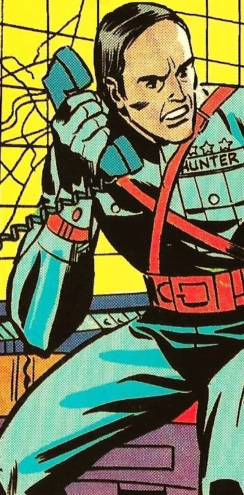 With Hunter busy dangling from Big Ben in an attempt to disarm a germ bomb, Fury led a squadron of S.T.R.I.K.E. members wearing jet packs in a thrilling aerial battle against the Red Skull's troops over London's Docklands. S.T.R.I.K.E. ended up bombing the Red Skull's base and the super-computer it contained into smithereens, and in the confusion caused by their attack the neo-Nazis holding the prime minister were distracted enough for him to escape.