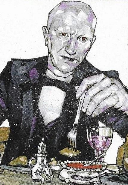 The mysterious Senor Apellido arrived on the scene in Downlode some time after the death of underworld kingpin Holy Moses Tanenbaum and quickly began to establish himself as a major player in the world of organised crime. He hired gunshark duo Sinister Dexter to kill a dancer called Isobel as a test of their abilities, but their apprentice Kal Cutter had become infatuated with her and secretly let her live. Finnigan Sinister and Ramone Dexter told Apellido that Isobel was dead and he put them on a retainer.