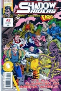 Shadow Riders was a 1993 US format limited series published by Marvel UK, featuring a group of individuals killed in violent skirmishes or accidents who were reanimated and given super powers by the alien wizard Vorin to help him in his war against the evil Mys-Tech Corporation. The series guest-starred a number of other Marvel UK characters (notably the Warheads, Dark Angel and Death's Head II) as well as American Marvel characters Cable, the Hulk and Ghost Rider.