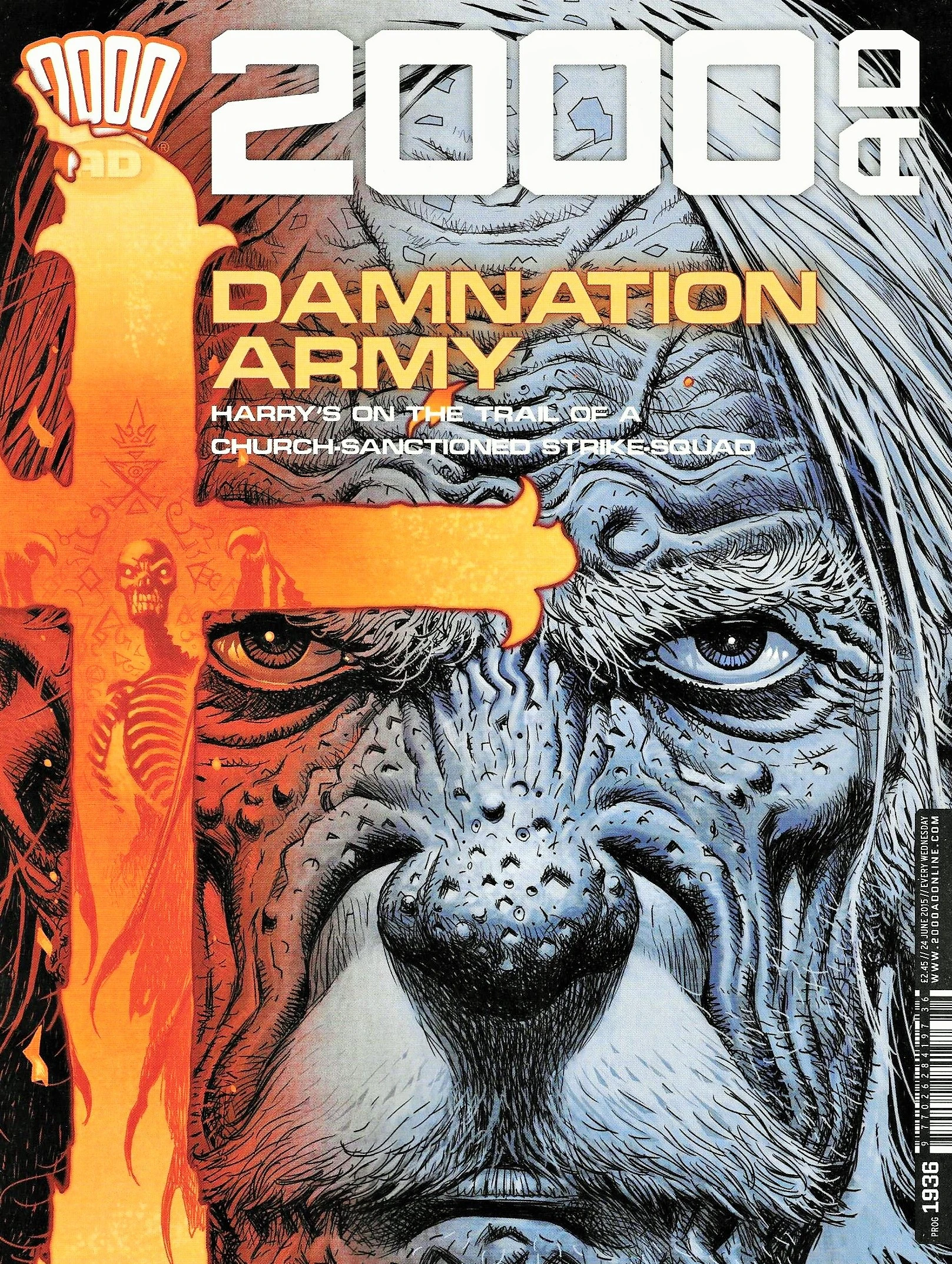 Absalom: "Inspector Harry Absalom. If you haven't heard of me, maybe you've heard of the not-very-nice people I work for. That's their sigil right there on my warrant card. Had a good look at it? Know what it means? Good... then let's be having you all, then." 2000 AD prog 1732.