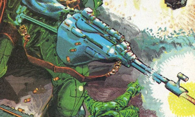 Lucky: "That's exactly what it is, Gunnar, you dweeb. But it's a sham. He's just using retentive fixations and mild lunacy to hide from reality. If you had slightly more charisma than a food mixer, you'd realise that. As it is, it's more fun talking to compost!" 2000 AD prog 966.